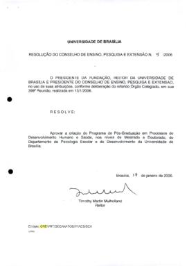 Aprova a criação do Programa de Pós-Graduação em Processos de Desenvolvimento Humano e Saúde, nos níveis de Mestrado e Doutorado, do Departamento de Psicologia Escolar e do Desenvolvimento da Universidade de Brasília.