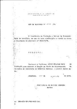 Dispensa, por término de mandato, os professores Juvenil Enrique Cares (FIT) e Marcelo Valle de Sousa (CEL) das funções de membros titular e suplente, respectivamente, junto à Câmara de Pesquisa e Pós-graduação (CPP), como representantes do Instituto de Ciências Biológicas e designa os professores José Carmine Dianese (FIT) e Zulmira Guerrero Marques Lacava (GEM) para exercerem as funções de membros titular e suplente, respectivamente, junto à CPP, como representantes do Instituto de Ciências Biológicas.